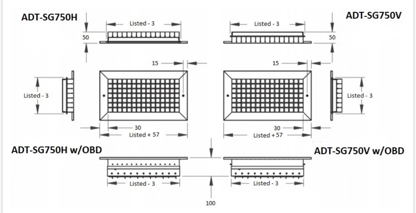 ADT-SG750H and ADT-SG750V double deflection supply grilles and registers are recommended for application in systems requiring optimum flexibility of pattern change to accommodate changing job conditions. Two sets of deflection blades allow the air spread to be set left or right and up or down for maximum versatility.